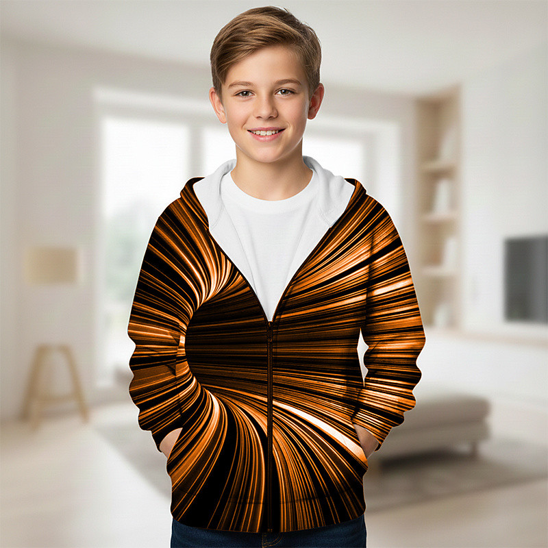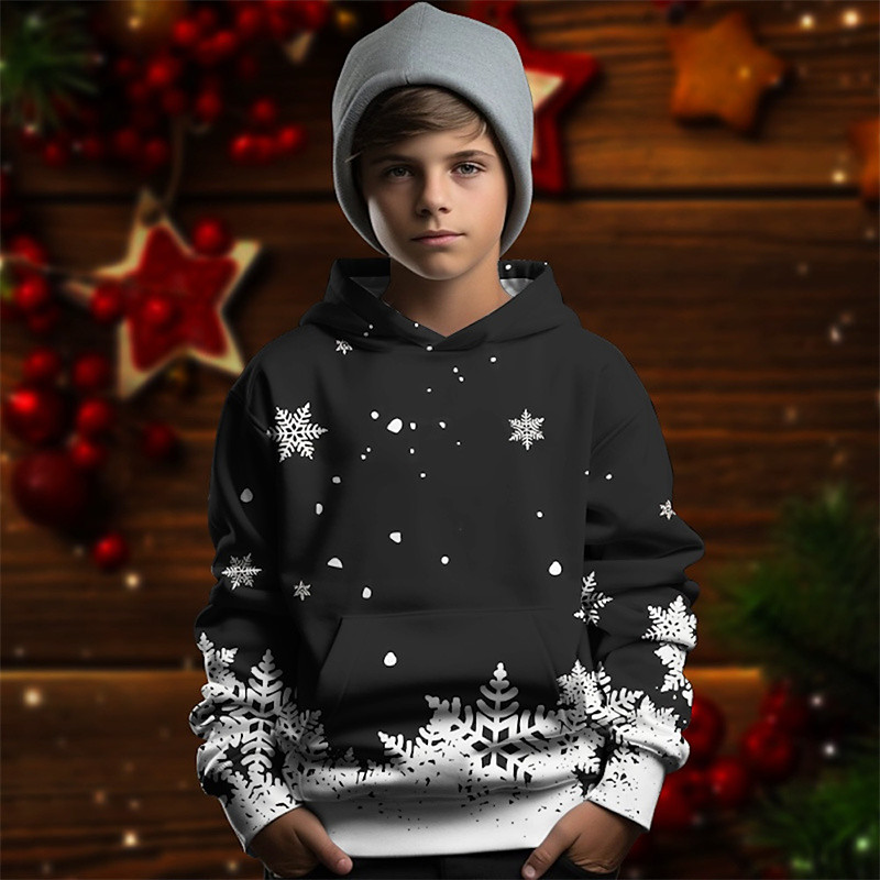 Boys 3D Graphic Snowflake Hoodie Long Sleeve Spring Fall Fashion Streetwear Kids 4-12 Years Hooded Outdoor Casual Daily Regular Fit