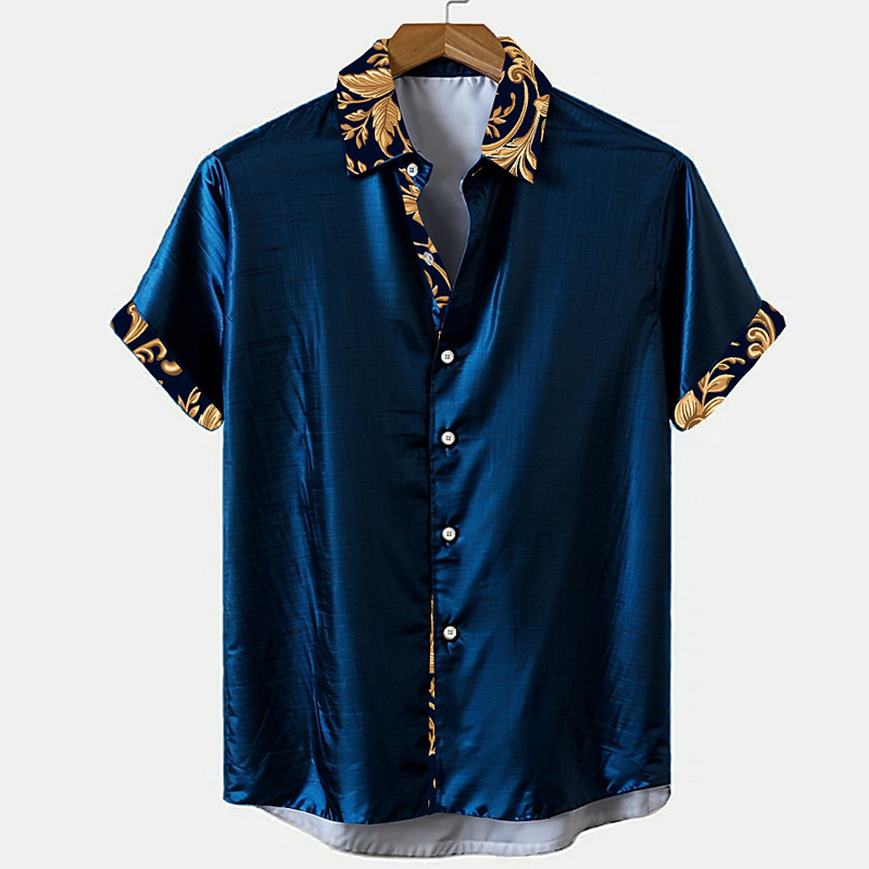 Men's Floral Plants Button Up Shirt Short Sleeve Fashion Casual Party Casual Summer Spring Turndown Button Up Black Blue Green