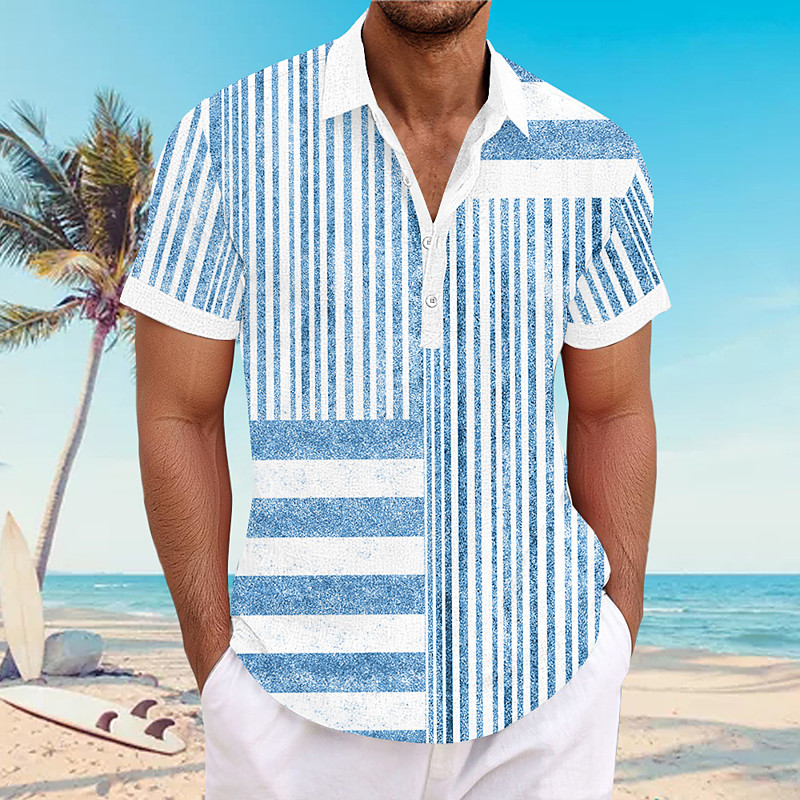 Men's Line Casual Shirt Button Up Shirt Short Sleeve Casual Causal Casual Summer Spring Turndown Button Up Black