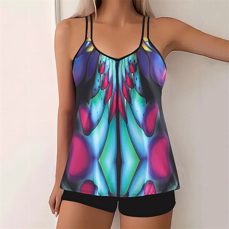 Women's Tankini Two Piece Swimsuit Swimwear Swimwear Yellow Blue Quick Dry Lightweight Breathable Sleeveless - Surfing Beach Swimming Summer Spring Plus Size