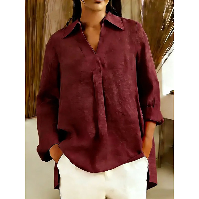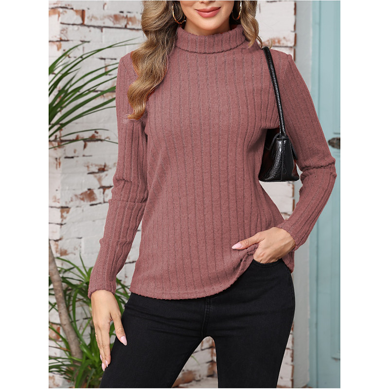 Women's Blouse Solid Color Stylish Casual Long Sleeve Turtleneck Regular Tops Daily Ruched Pink Wine Orange Green Khaki Spring Fall Winter