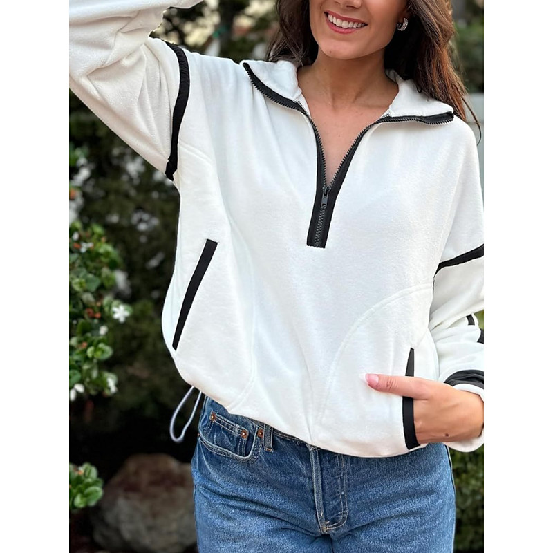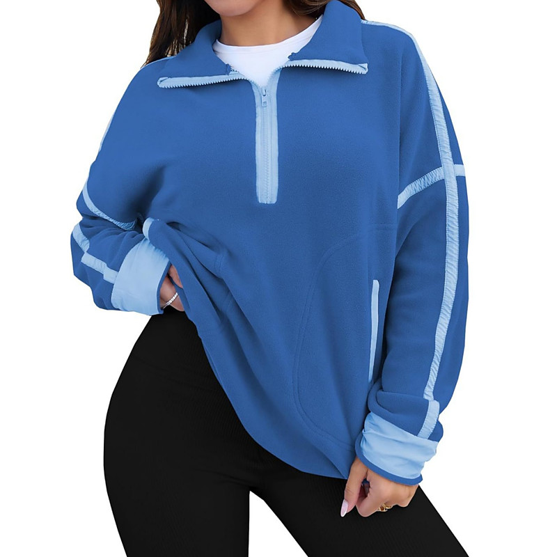 Women's Blouse Solid Color Stylish Casual Long Sleeve High Neck Regular Tops Daily Zipper Blue White Brown Apricot Spring Fall Winter