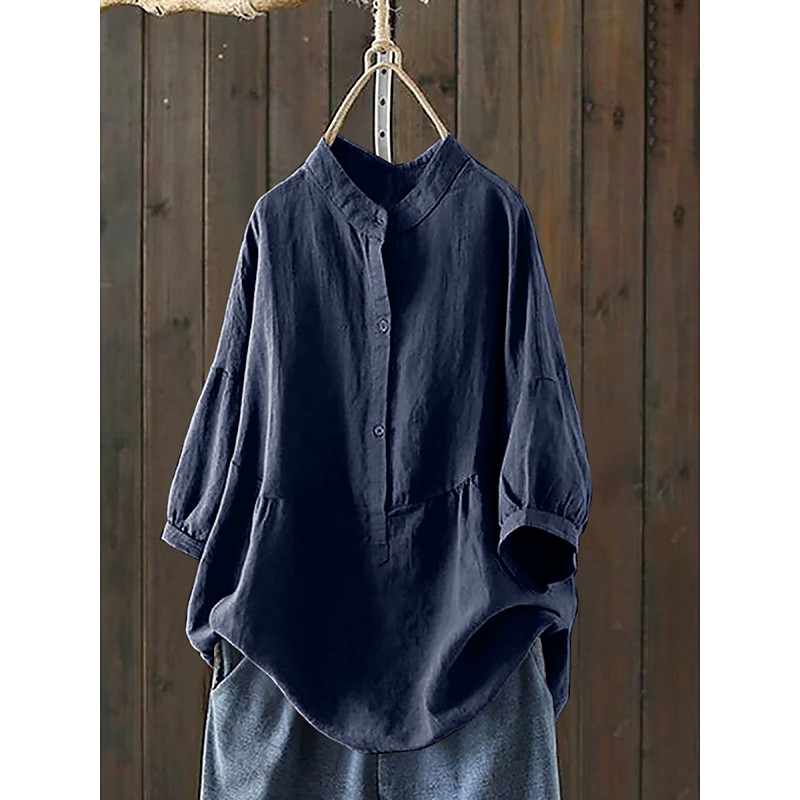 Women's Blouse Solid Color Stylish Casual Long Sleeve High Neck Regular Tops Daily Buttons Blue Black White Red Gray Spring