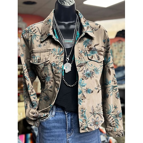 Damen Jacke Warm Bequem Knöpfe Druck Aktiv Vintage Künstlerisch Lässig Blumen Lässig Regulär Umlegekragen Normale Passform Langarm Oberbekleidung Blau Rote Khaki Herbst Winter