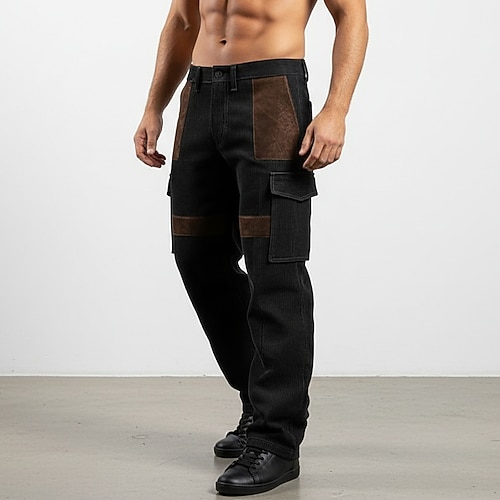 Per uomo Pantaloni Cargo Pantaloni in velluto a coste Pantaloni da Lavoro Pantaloni in pelle scamosciata Patchwork Multi-tasche Gamba Dritta Semplice Traspirante Lunghezza intera Quotidiano
