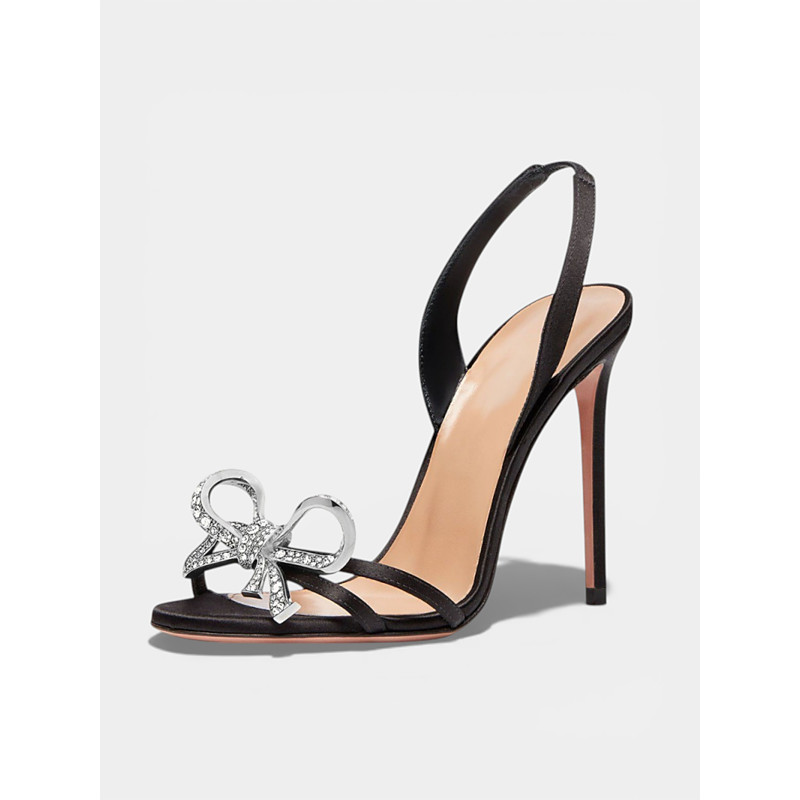Women's Silver Bow Stiletto Heels, Elegant Slingback High Heel Sandals for Bride, City Chic Wedding Evening Ceremony