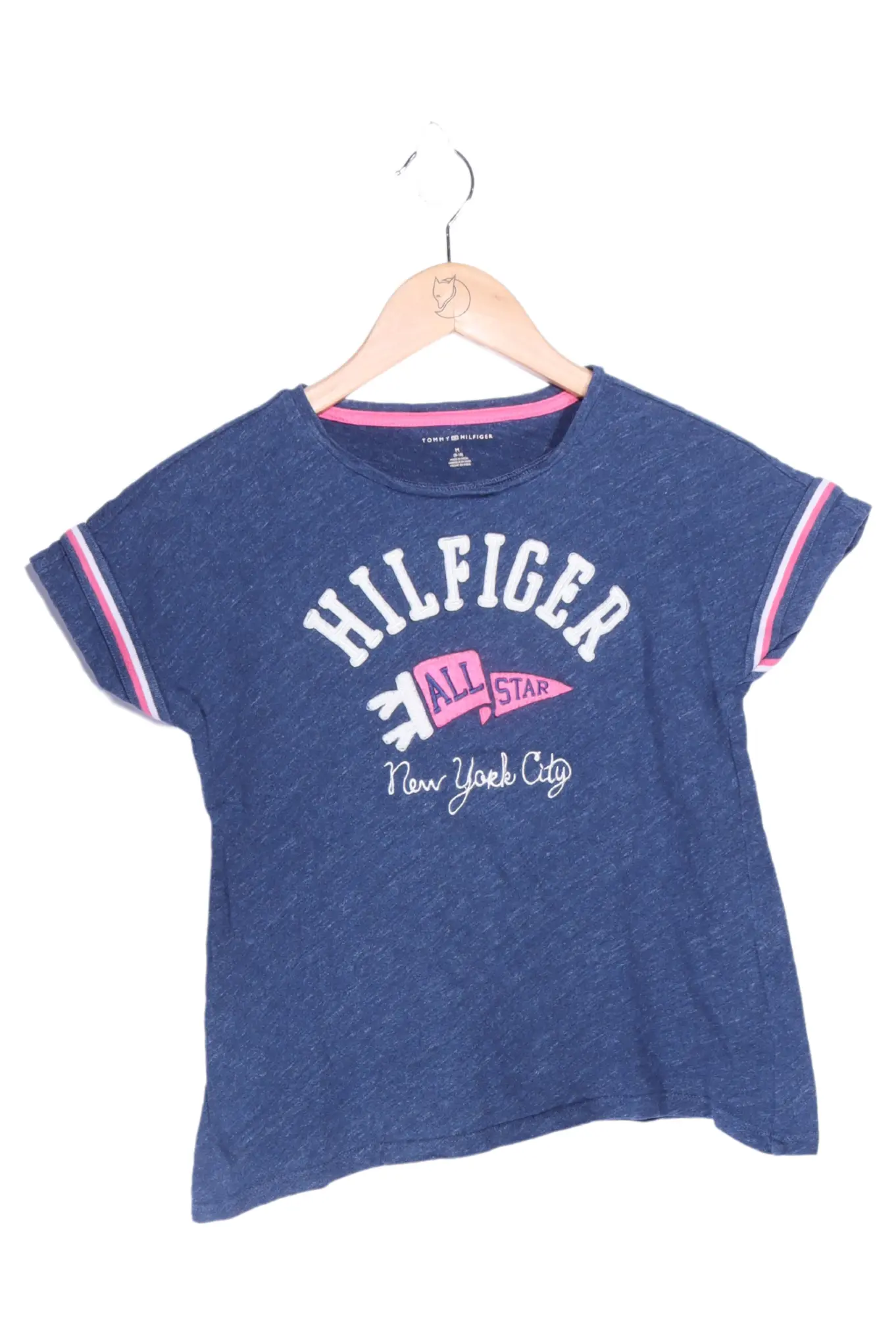 TOMMY HILFIGER Kinder T-Shirt Gr. M Blau Logo Kurzarm