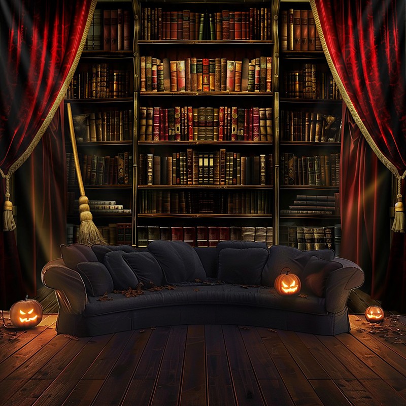 Gothic Window View Wall Tapestry – Red Curtain Stage with Spooky Moonlit Night Scene, Horror Backdrop for 2025 Living Room, Bedroom, Haunted House Decoration