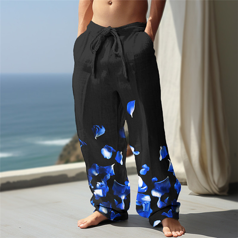 Valentine's Day Floral Men's Romantic 3D Printed Casual Pants Trousers Elastic Waist Drawstring Loose Fit Straight-Leg Summer Beach Pants S TO 3XL