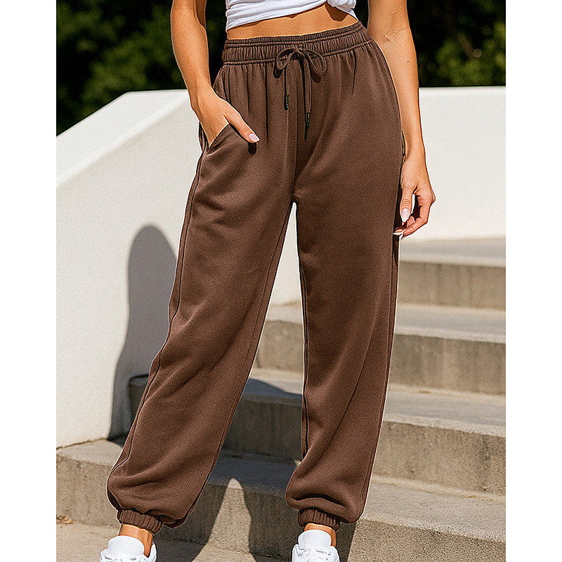 Women's Wide Leg Slacks Streetwear Casual Full Length Natural Plain Elastic Waist Comfortable Outdoor Vacation Street claret Depression Green Rust Apricot Fall Regular Fit