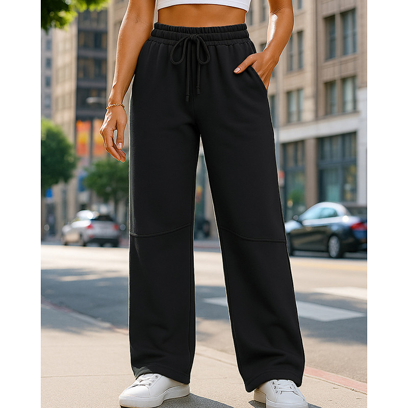 Women's Wide Leg Pants Sport Sweatpants Trackpants Drawstring High Waist Bottoms Athleisure Gym Workout Fall Outdoor Travel Running Regular Fit Sportswear Activewear Solid Colored Dark Grey Black