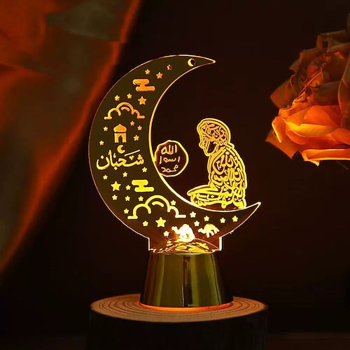 1/3 pezzi, luce notturna a LED acrilica a forma di luna per il festival del Ramadan, candela lunare, decorazione islamica musulmana per Eid al-Fitr