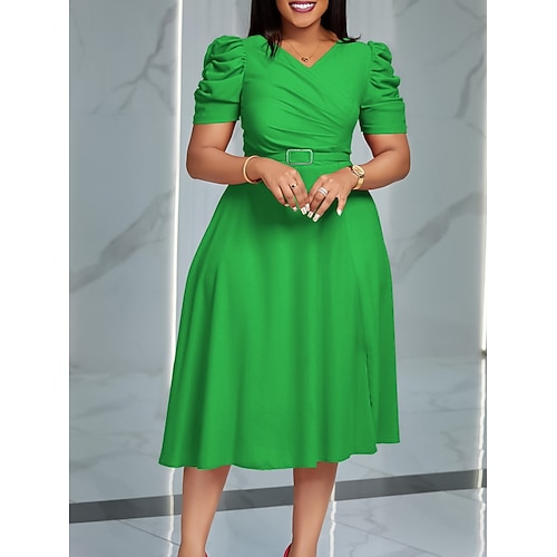 Per donna Abito Midi Abito nero Vestito da Festa Elegante Moda Moderno Ufficio Cocktail party Vestibilità regolare Semplice Manica Corta Scollo a V Blu Nero Rosso Verde Primavera Autunno Inverno