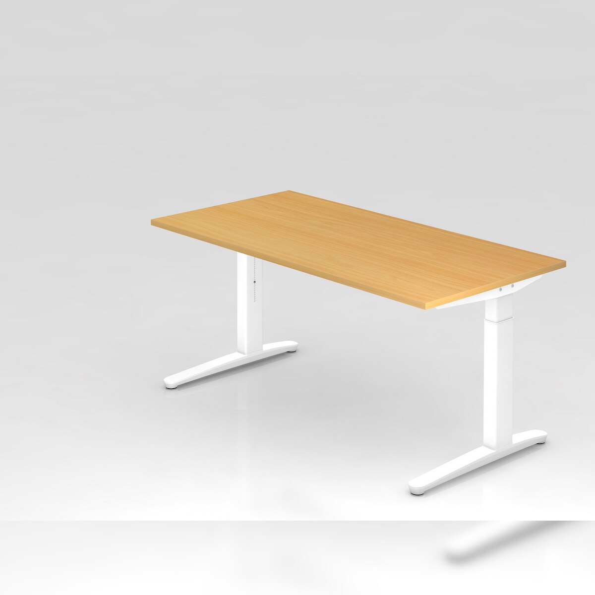 PROREGAL Schreibtisch Mika | Buche | Weißes Gestell | BxT 160x80cm | Arbeitshöhe 65-85cm | höhenjustierbar, 1cm Raster | C-Fuß-Gestell | Bürotisch