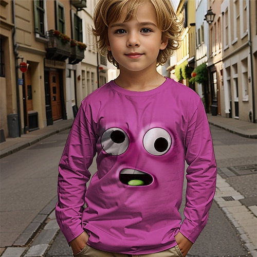 Halloween Ragazzi 3D Grafico Maglietta Manica Lunga Primavera Autunno Moda Essenziale Bambini 4-12 Anni Girocollo All'aperto Casuale Quotidiano Vestibilità regolare