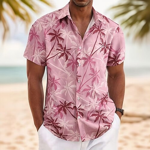 Per uomo Palma di Cocco Camicia casual Camicia hawaiana estiva Camicia Aloha Manica Corta Hawaiano Resort Vacanza Casuale Estate Primavera Colletto Mao Cardigan con Bottoni Bianco Rosa Blu Grigio