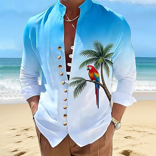 Per uomo Albero di Cocco Pappagallo Colore sfumato Camicie hawaiane Camicia Aloha Camicia con colletto alla coreana Manica Lunga Hawaiano Vacanza al Mare Estate Primavera Collo alla coreana Colletto