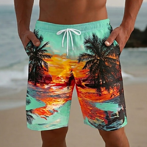 Per uomo Boxer da surf Pantaloncini da mare Boxer da mare A cordoncino con fodera in rete Vita elastica Albero di cocco Comfort Asciugatura rapida Breve Per eventi Spiaggia Fine settimana Di tendenza