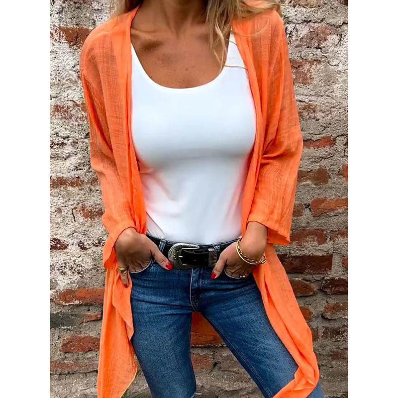 Women's Button Up Blouse Faux Cotton Linen Solid Color Daily Stylish Casual Long Sleeve V Neck Long Tops Daily Pink Orange Beige Gray Summer Spring Fall