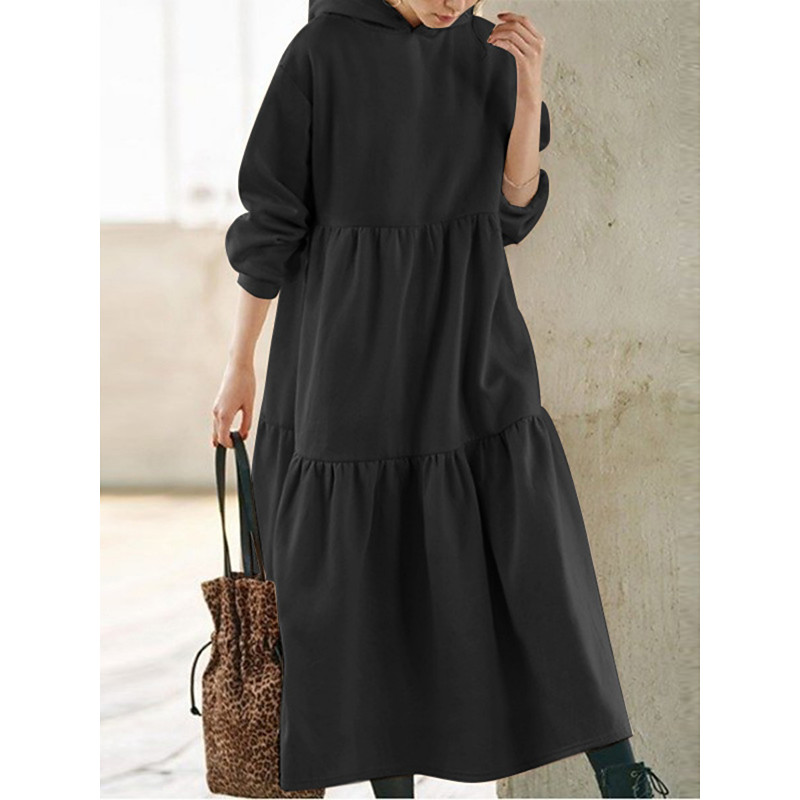 Women's Maxi Dress A Line Dress Casual Daily Loose Fit Plain Long Sleeve Hooded Black Fuchsia Brown Summer Fall Autumn