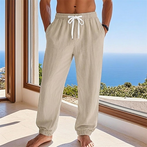 Per uomo Joggers Pantaloni di Lino Pantaloni Pantaloni Estivi Pantaloni Larghi Coulisse Elastico in vita Semplice Comodità Leggero Lunghezza intera Quotidiano Spiaggia Ferie Vacanza Moda Nero Bianco