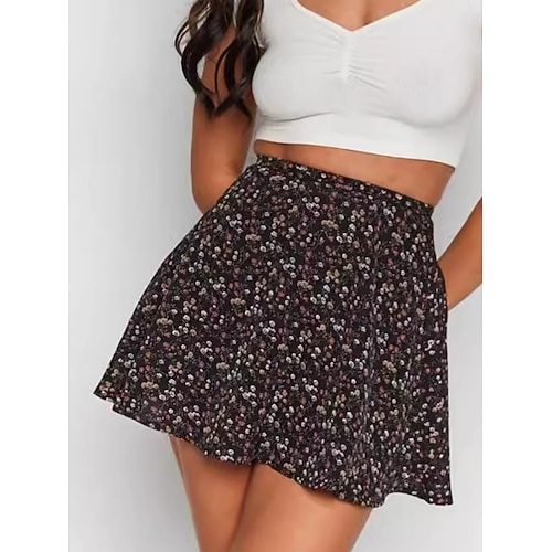 Per donna Gonna da vacanza Moda Casual Mini Vita Alta Gonne Floreale Stampato Micro-elastico Quotidiano Streetwear Blu Nero Giallo Rosso Estate Poliestere