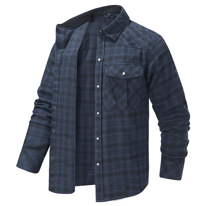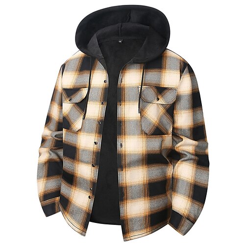 Men's Shirt Jacket Casual Jacket Flannel Fleece Jacket Casual Daily Sexy Fall Winter Color Block Plaid / Striped / Chevron / Round Casual Lapel Regular Black Royal Blue Khaki Jacket