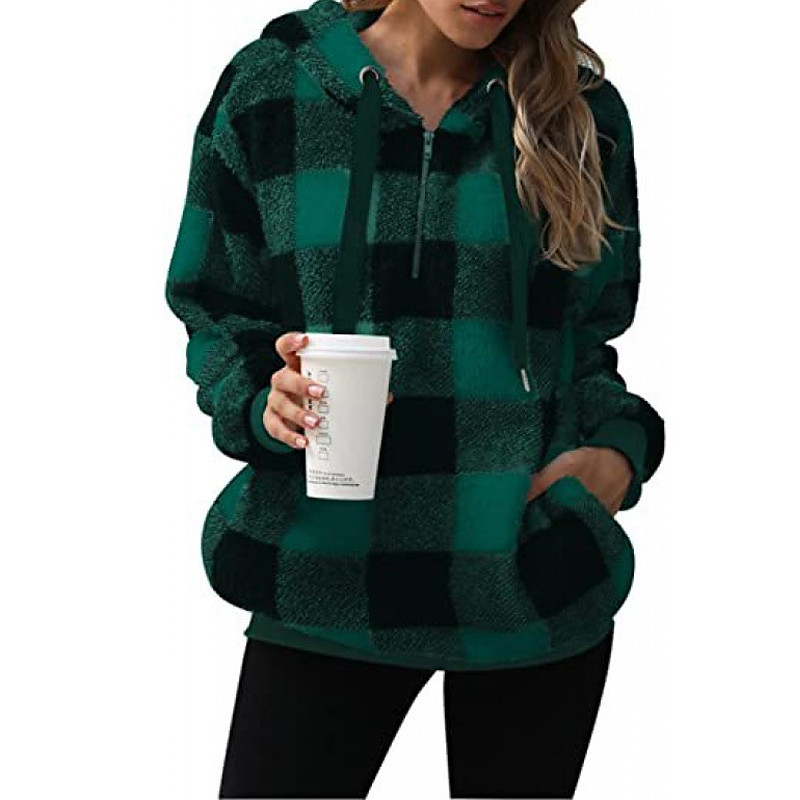Women's Pullover Hoodie Sweatshirt Plaid Streetwear Casual Long Sleeve Hooded Regular Tops Street Holiday Going out Pocket Black Light Green Pink Red Blue Fall Winter