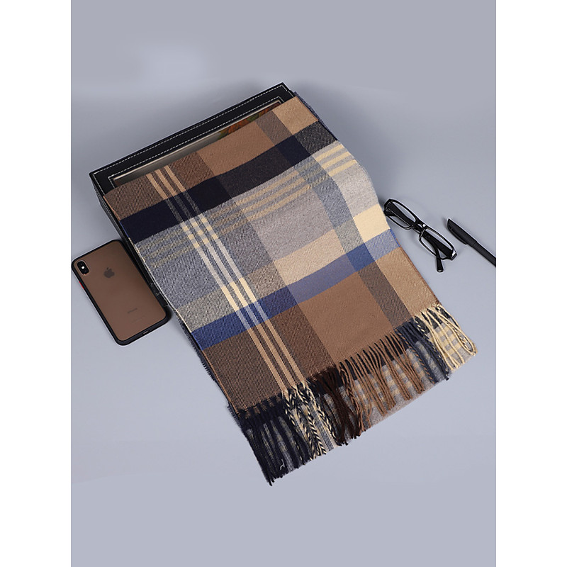 Men's Christmas Plaid Scarf – Stylish Polyester Scarf with Fringed Edges – Available in Multiple Colors – Warm Holiday Accessory for Men