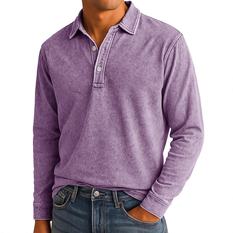 Men's Cotton Polo Shirt Golf Polos Shirts Business Casual Lapel Classic Long Sleeve Vintage Fashion Solid Color Plain Vintage Style Washed Fall Winter All Seasons Regular Fit Dark Brown Black Pink