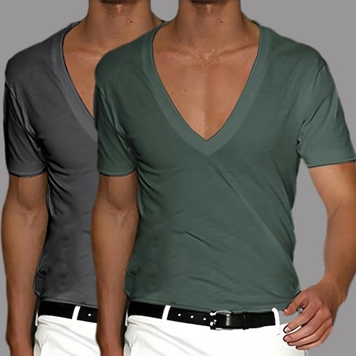 Herren T Shirt T-Shirt Kurzarm Kurze Ärmel V Ausschnitt Sommer Frühling Einfach Designer Basic Moderne zeitgenössische Klassicher Stil Mehrfachpackung Basic Urlaub Straße Lässig SchwarzGrau Rot