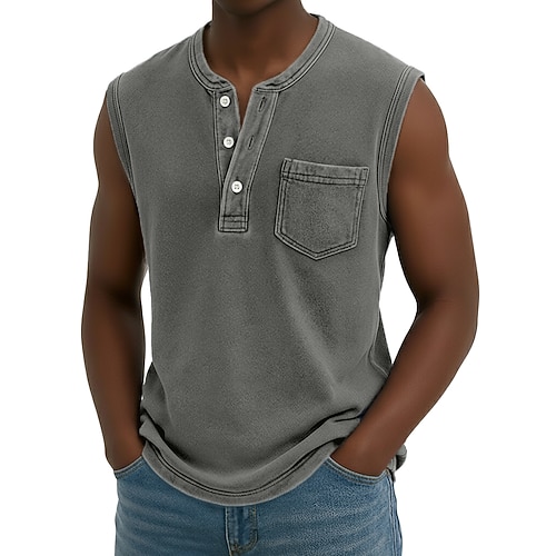 Herren Tank Top Weste Ärmelloses Shirt Ärmellos Henley Sommer Frühling Einfach Mode Designer Basic Tasche Vintage-Stil Knöpfe Urlaub Straße Alltagstauglich Schwarz Hellgrün Rosa Top T-Shirt für Herren