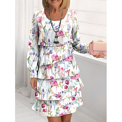 Per donna Abito al ginocchio Vestito Casual Vestito in Chiffon Abito a Tubino Abito a strati Elegante Vacanza Festa Vestibilità regolare Floreale Manica Lunga Girocollo Nero Bianco Blu Verde Estate