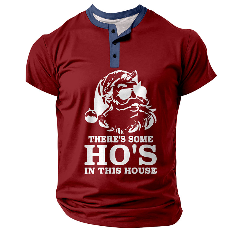 Men's Christmas Santa Claus T Shirt Short Sleeve 3D Print Fashion Outdoor Athleisure Street Sports Outdoor Festival Summer Spring Black Red Blue Green Henley Henley T-Shirt