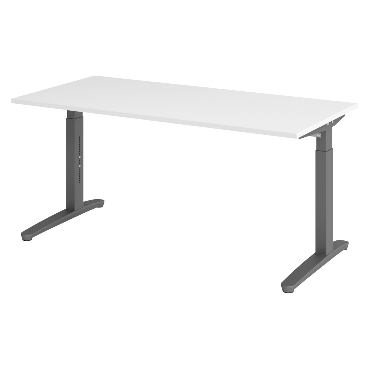 bümö manuell höhenverstellbarer Schreibtisch 160x80 in weiß, Gestell in graphit - PC Tisch höhenverstellbar & groß, höhenverstellbarer Tisch Büro,