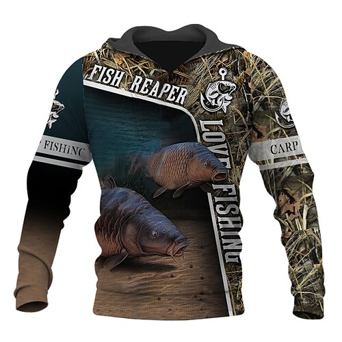 Herren Grafik Tiermotiv Fisch Kapuzensweatshirt Kapuzenshirts Pullover Streetwear Designer Lässig Große Größen Langarm Mit Kapuze Sport Outdoor Täglich Leichtes Khaki. Schwarz Königsblau Blau Khaki