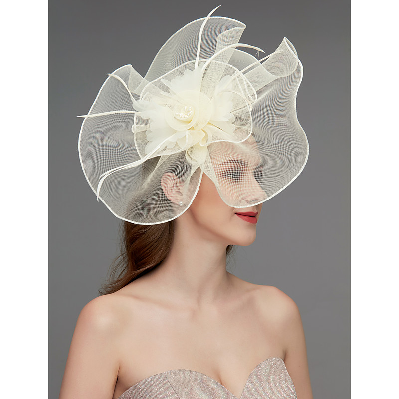 Flower Feather Net Fascinators Hat Kentucky Headpiece Trim 1 PC Horse Race Ladies Day Horse Race Elegant Luxurious with Clip Headband Headwear dress to impress Race Day Dress