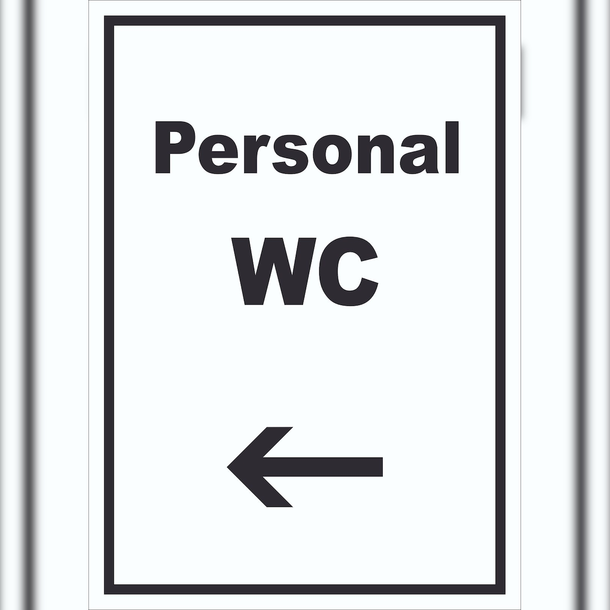 HB-Druck Personal WC Schild mit Text und Richtungspfeil links hochkant A4 (210x297mm)