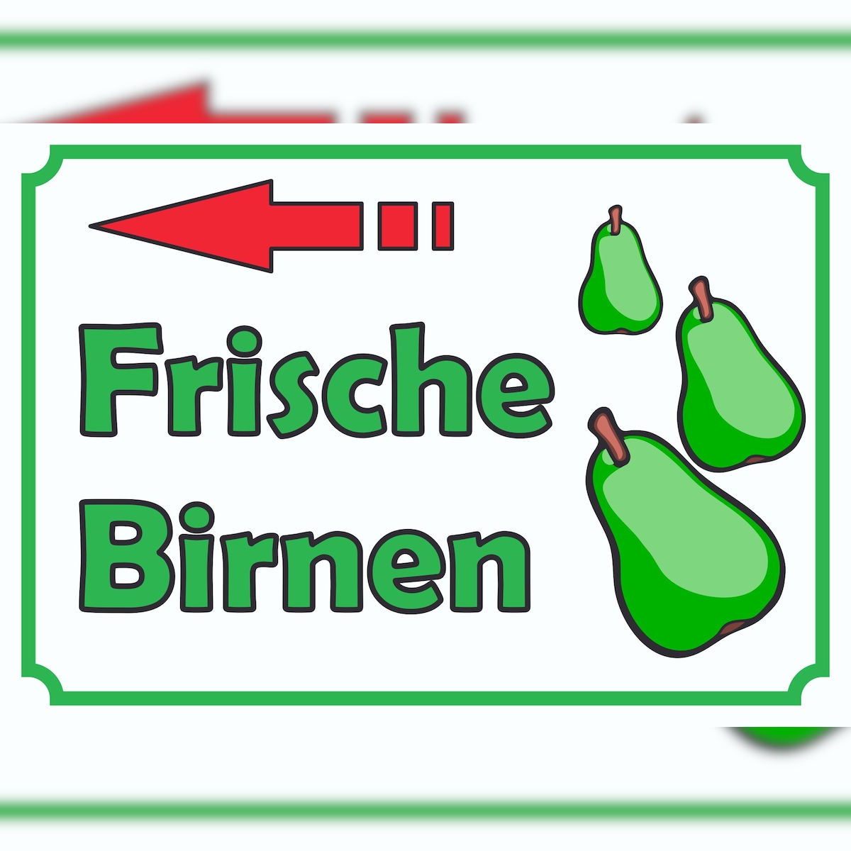 Verkaufsschild Schild Frische Birnen zu verkaufen mit Pfeil nach links A4 (210x297mm)