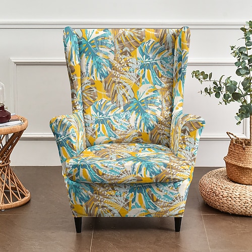 fodera per poltrona con schienale alto, fodera in poliestere elasticizzato con stampa floreale, a righe o geometrica, protezione per mobili per soggiorno
