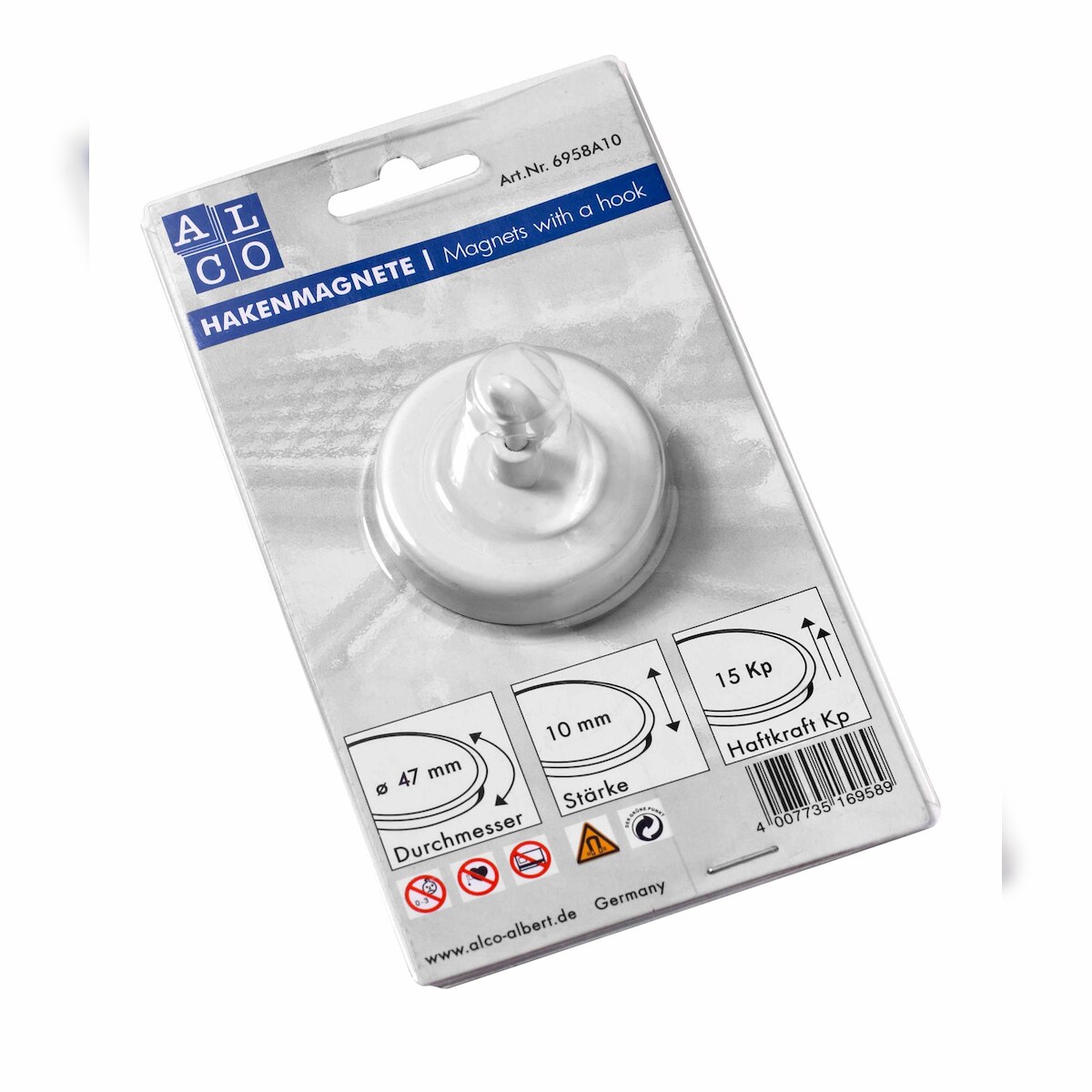 Alco Hakenmagnete, rund, Weiß, Ø 47 mm, Haftkraft min. 15 kp,