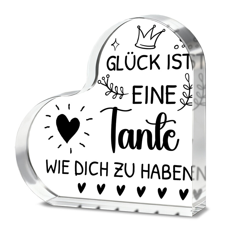 Alphynix Herz-Acryl-Plakette, 1 Stück, 'Glück ist eine Tante wie dich zu haben' Geschenk mit Krone- und Sternenmotiven, besonderes Andenken für die Tante