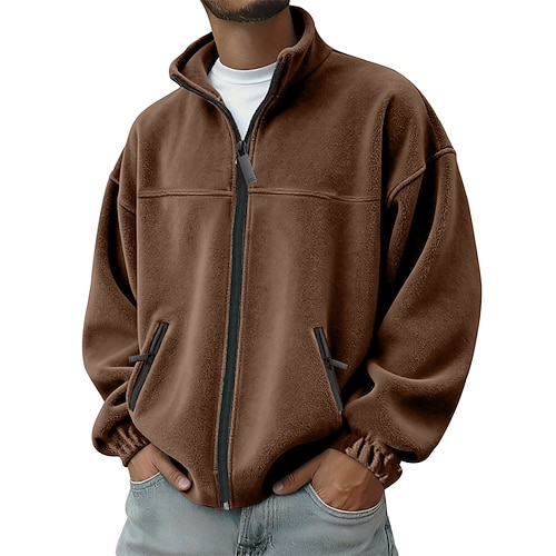 Per uomo Giacca da Esterno Giacca in Pile Formale Casa Calore Termico Tasca Base Primavera Autunno Inverno Tinta unica Attivo Neutro Colletto a Camicia Regolare Grigio scuro Nero Viola Arancione