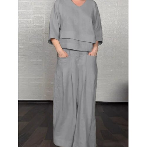 Per donna Set di Pantaloni Bolero Top Finto cotone e lino Manica 3/4 Scollo a V Semplice Moda Streetwear Casuale Quotidiano All'aperto Bianco Giallo Vino Estate Vestibilità comoda