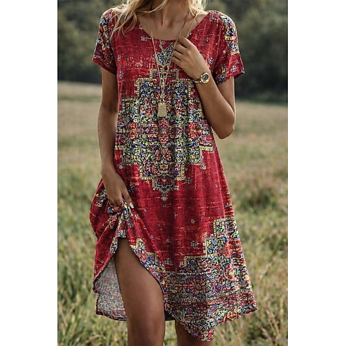 Per donna Mini Abito Vestito T-Shirt Abito a trapezio Abito Estivo Casual Quotidiano Spiaggia Ferie Vestibilità comoda Geometrico Manica Corta Girocollo Rosso Viola Estate Primavera