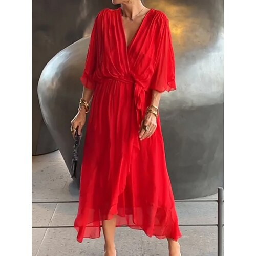 Per donna Abito Midi Vestito Casual Elegante Moda Moderno All'aperto Vacanza Uscire Vestibilità comoda Semplice Mezza Manica Scollo a V Blu Nero Bianco Rosso Estate Primavera