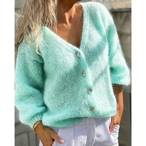 Per donna Felpa Cardigan Streetwear Casual Tinta unica Scollo a V Bottoni Lavorato a maglia Manica Lunga Top Regolari Maglia Quotidiano Ferie Uscire Azzurro Autunno Inverno