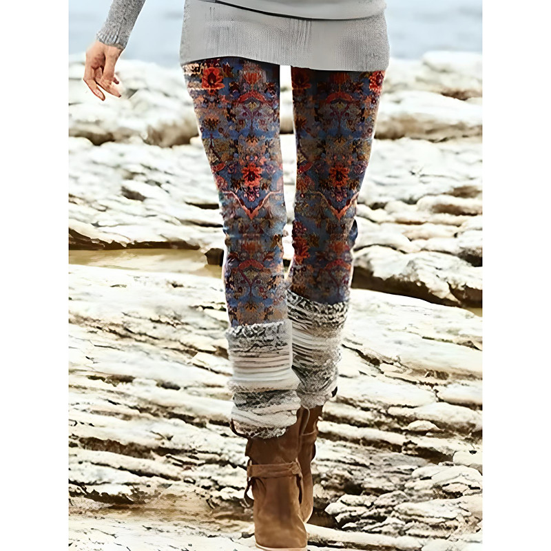 Women's Leggings Vacation Vintage Fashion Full Length High Waist Graphic Paisley Plaid Drawstring Patchwork Printing Thermal Warm Soft Breathable Stretchy Vacation Street Causal Dark Brown Dark
