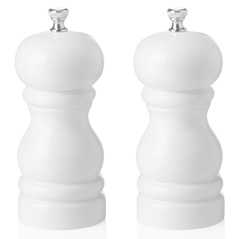 Salzmühle und Pfeffermühle weiß glänzend, 11 cm, Gummibaumholz, Classic Mill 2 tlg. Set