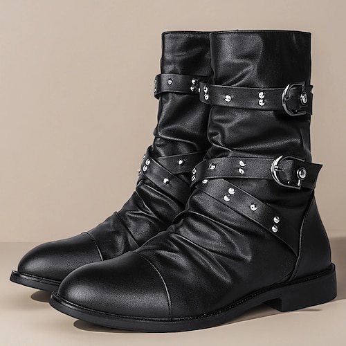 stivali da uomo in similpelle nera con cinturino e fibbia, stivaletti in stile punk gotico per feste e festival